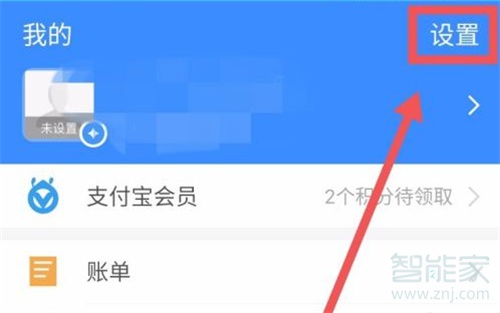 1、打开支付宝app,点击我的,点击右上角的设置。