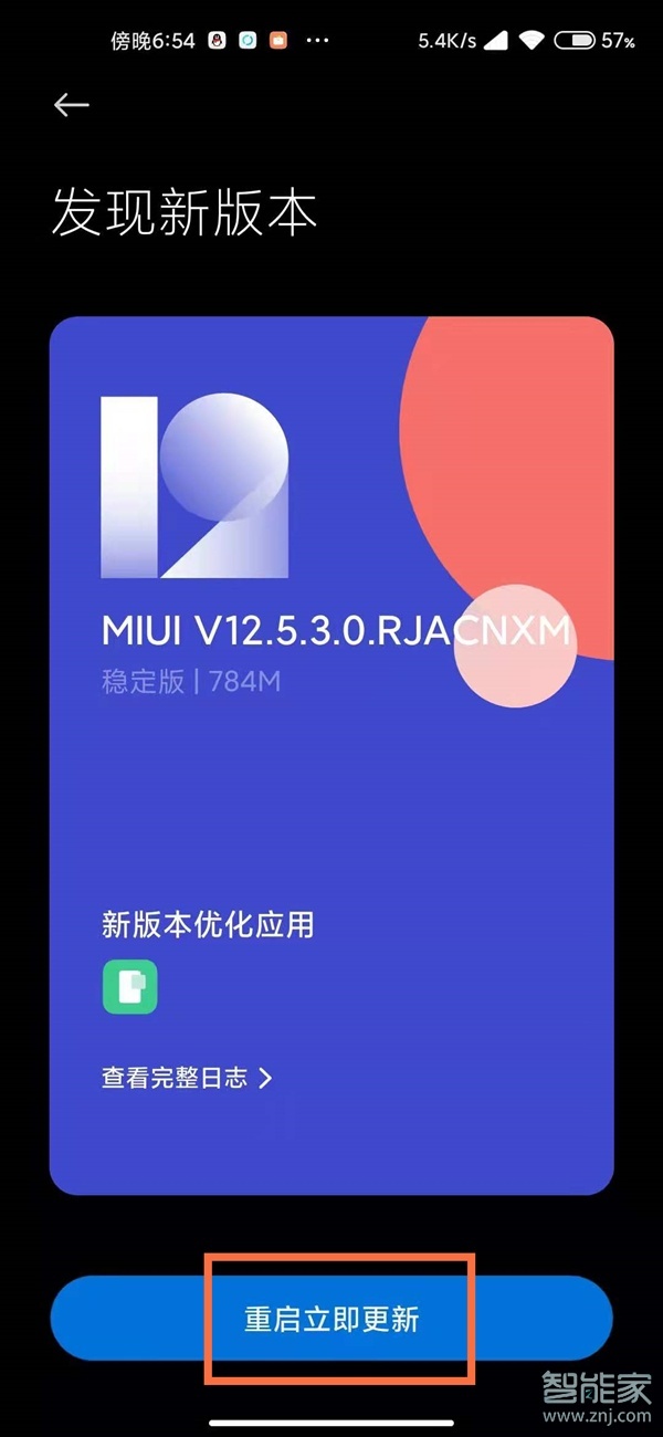 3、如有可更新版本,点击下方的重启立即更新即可。