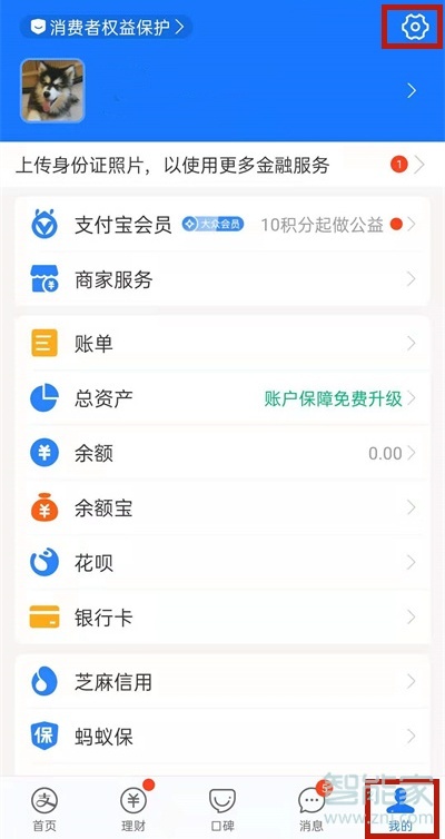 1、打开支付宝,点击右下角我的,点击右上角设置按钮。