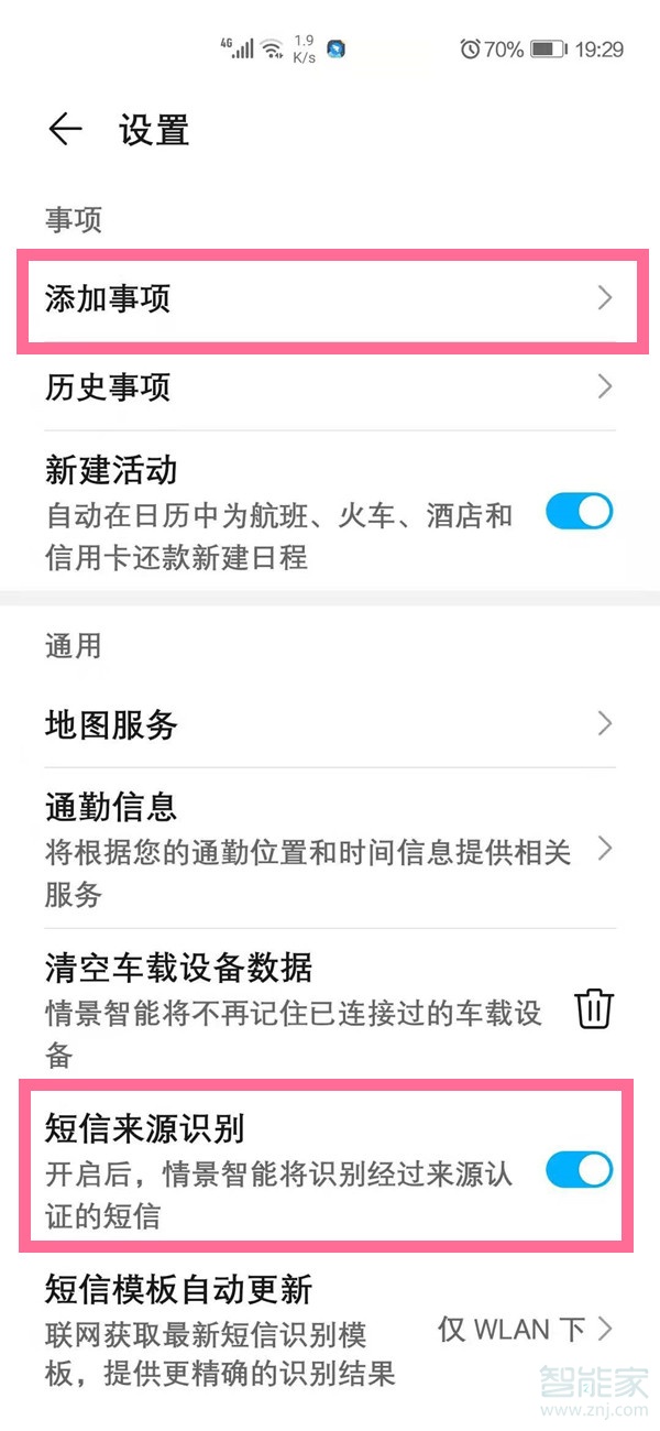 如果还是没有提示,智能助手提供了手动添加火车票提醒的功能:在智能助手中,点击上方头像图标>“情景智能”>右上角“设置”图标>“添加事项”,即可手动添加火车票。