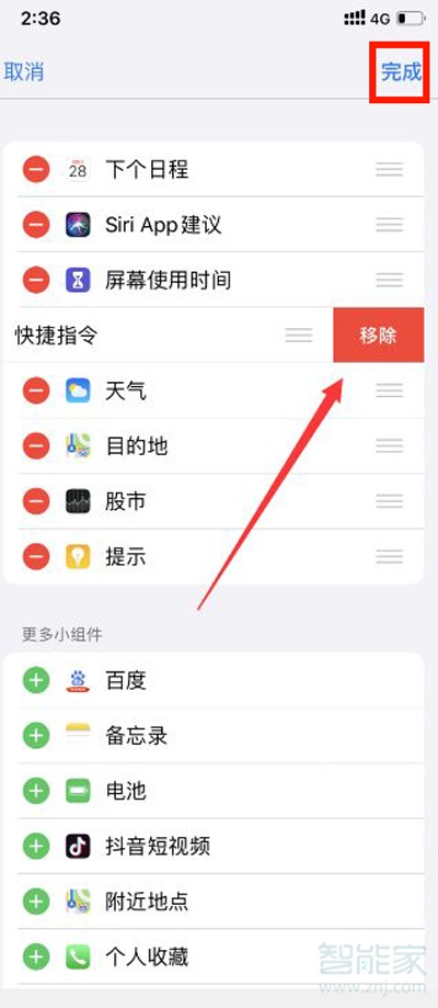 2、把带红色圆点减号的程序全部移除,点击右上方完成即可。