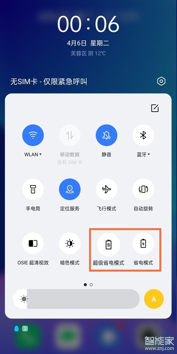 1、从屏幕顶端下拉,拉出状态栏,点击【省电模式】或者【超级省电模式】。