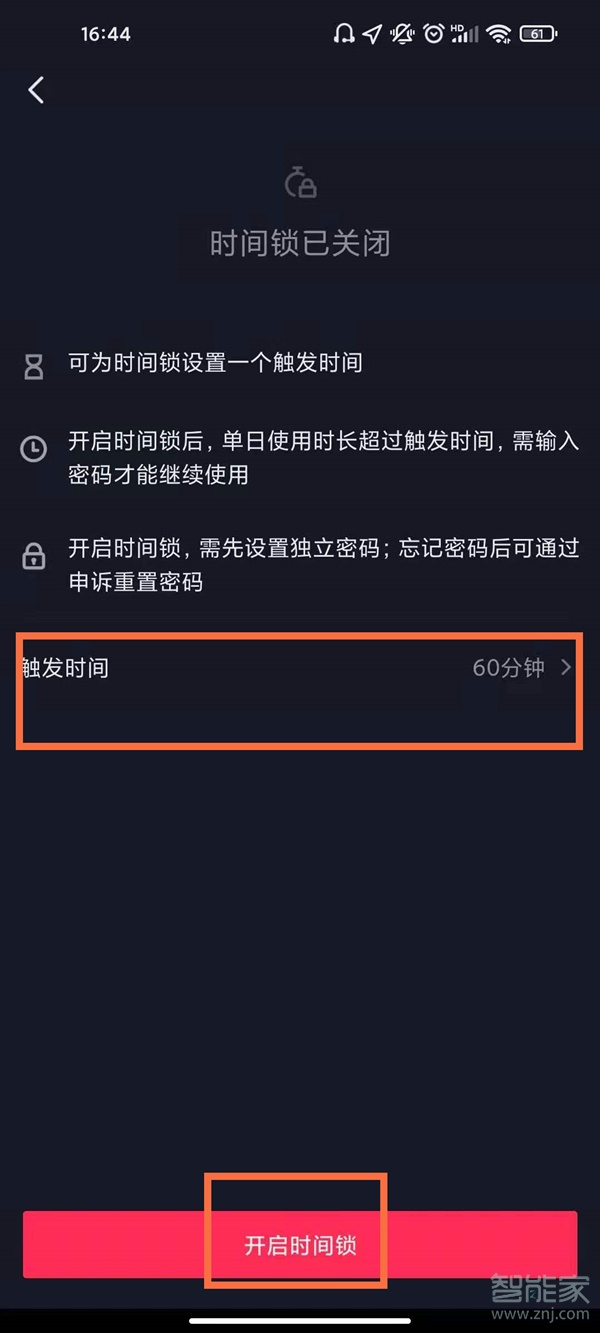2、点击时间锁,调好时间,点击开始时间锁即可。