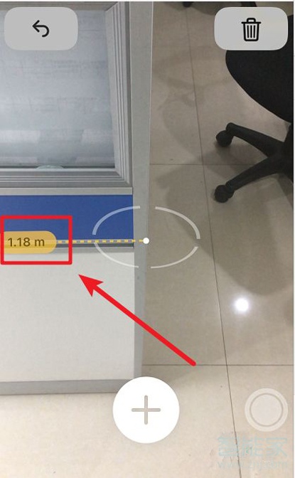 2、将镜头中的原点对准测量的起点,按下“+”号,标注起点。