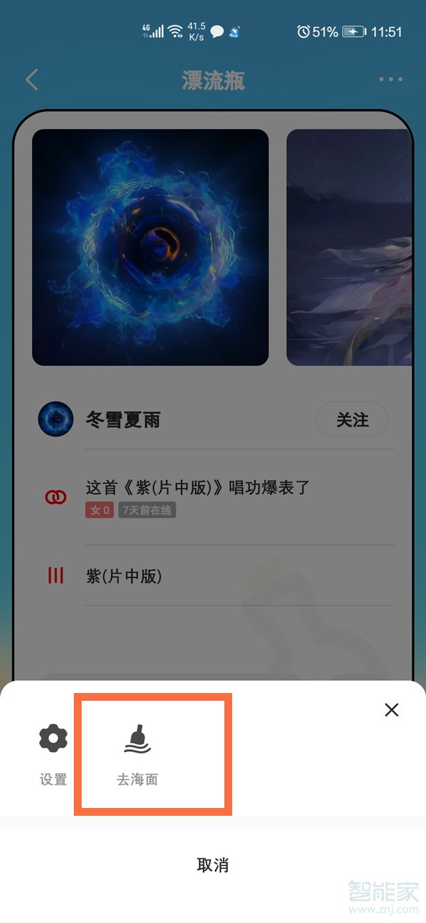 3、点击右上角的三点,点击【去海面】可打捞和投瓶。