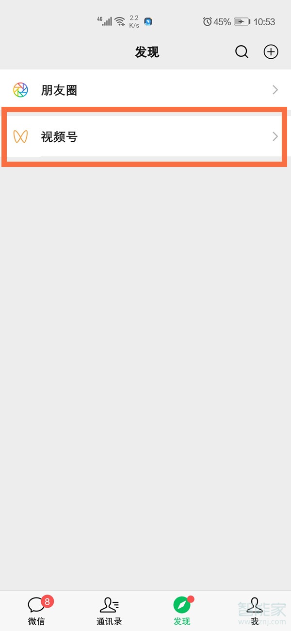 1、打开微信,在底部“发现”界面点击【视频号】。