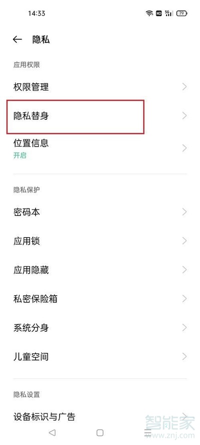 2、点击隐私替身。