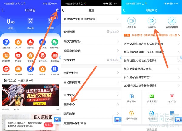 1、打开手机qq>点击左上角头像>我的qq钱包>设置图标>客服中心>注销账户。