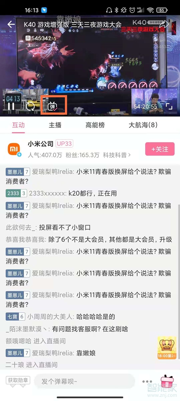 1、直播页面:点击直播画面下面的弹,即可关闭弹幕。