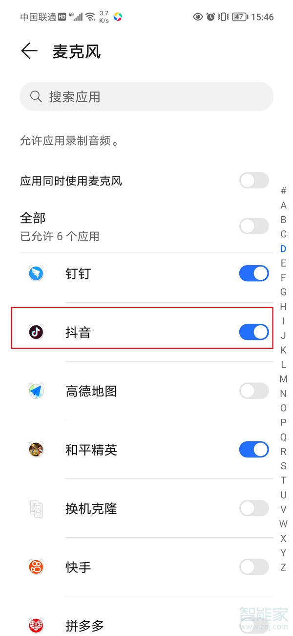 1、打开手机设置>应用>权限管理>打开抖音麦克风权限。