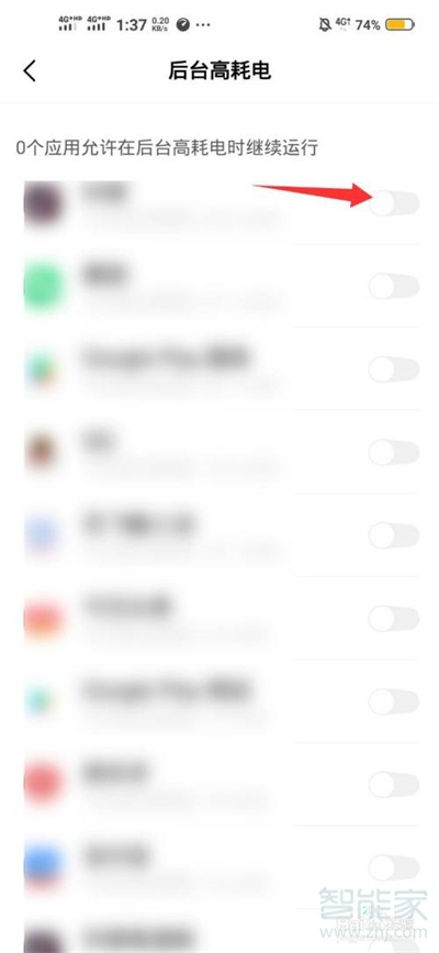 5、来到后台高耗电页面,将所有应用后面的开关关闭。