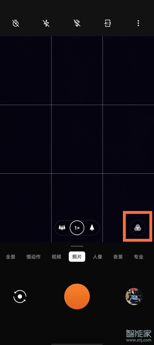 2、点击拍照快门右上角的滤镜图标。