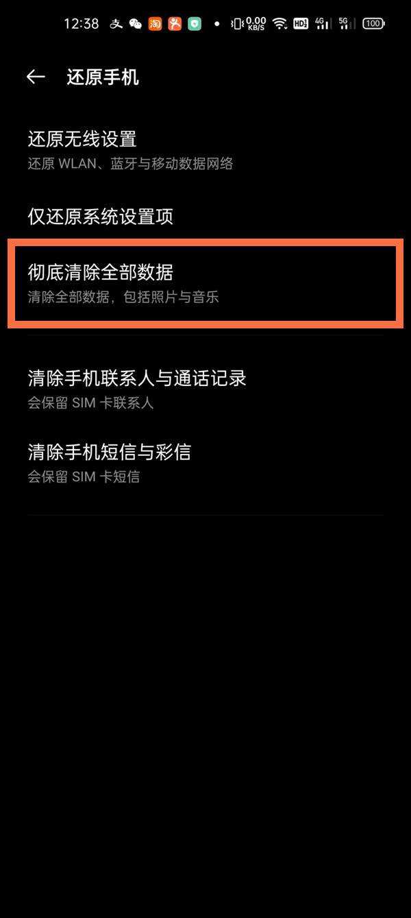 3、点击【彻底清除全部数据】。