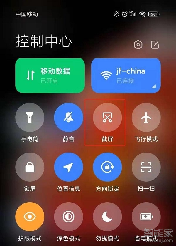 ️2、快捷键截屏:从手机屏幕顶部状态栏处下拉,呼出控制中心,点击【截屏】快捷功能图标即可。