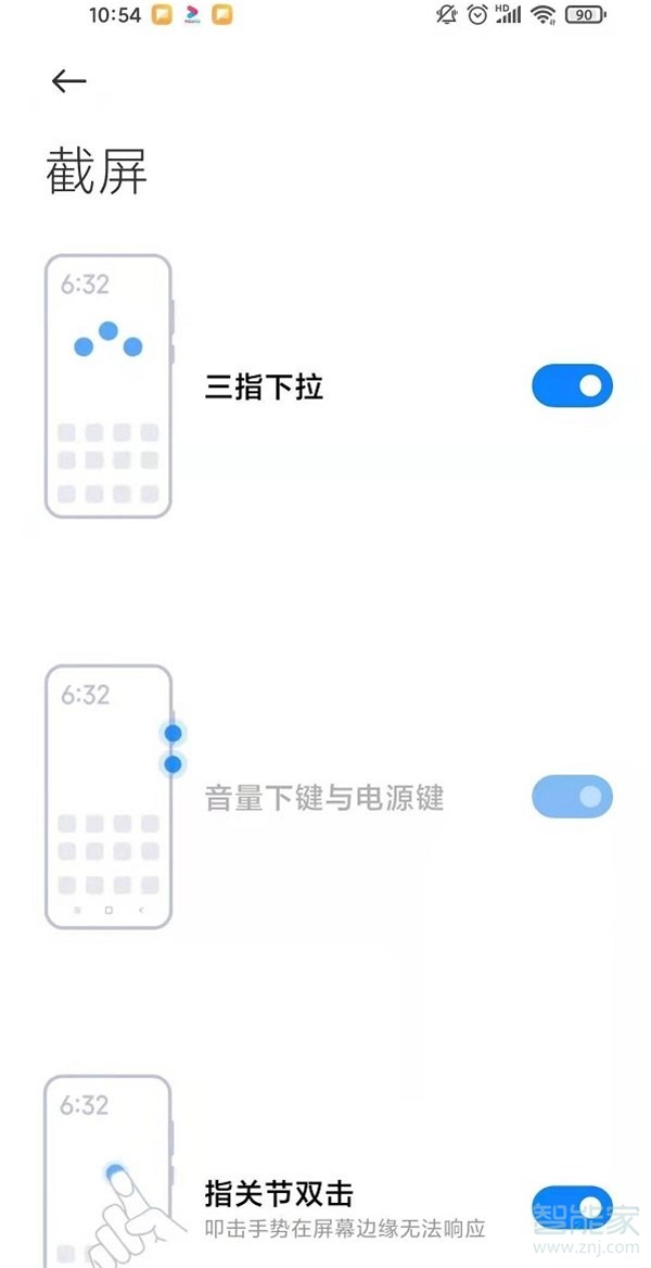 ️3、三指下拉和指关节双击截屏:点击设置-更多设置-快捷手势-截屏,开启【三指下拉】、【指关节双击】。