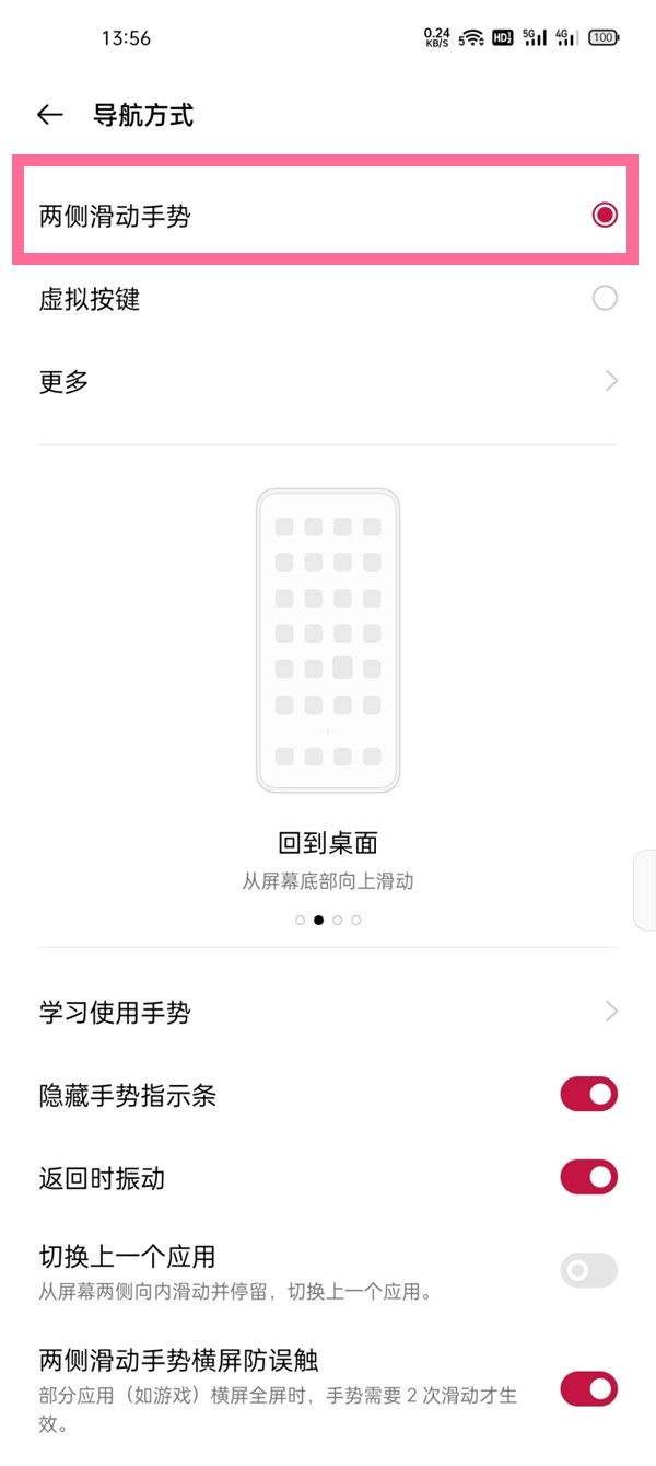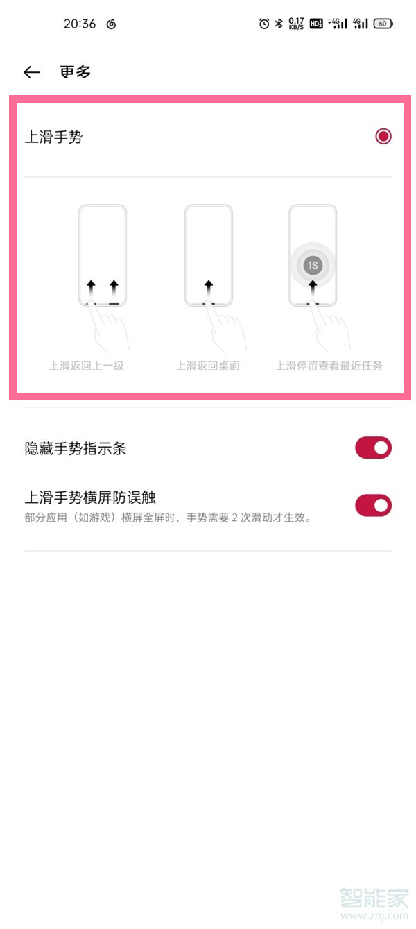 3、如果设置了上滑手势,从屏幕底部左侧或者右侧上滑可返回上一级,从屏幕底部边缘上滑回到桌面。