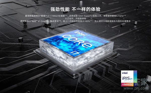 这一代的荣耀MagicBook 15 2026款最大的改变是搭载了英特尔的第十一代酷睿处理器,有两个版本,包括i5-1135G7和i7-1165G7。i5-1135G版配备了16GB DDR4的内存和512GB的SSD,是这一代MagicBook系列中的顶配了。它使用了i5-1135G7低压版的处理器,采用英特尔10nm +工艺,拥有4核8线程,主频提升到了2.8GHz,睿频提升到了4.7GHz,拥有12MB的三级缓存。核显也换成了全新的Intel Xe架构,拥有80个EU,约640个流处理器,1.3GHZ频率。这一代的1135G7有两个很重要的改进,一个是支持AVX512,另一个是新的Xe核显性能强化。这两个改进,Intel认为是提升未来PC AI性能的重要手段。