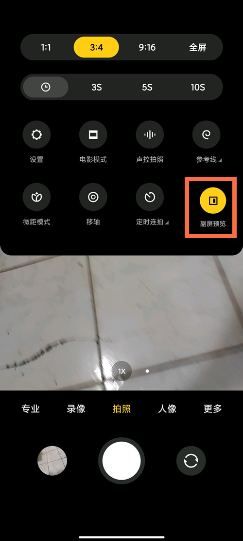 4、开启后将后置镜头对准即可自拍,自拍成像可在背屏进行预览。