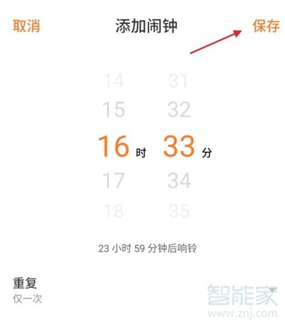 3、设置好闹钟时间、以及重复次数。