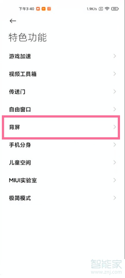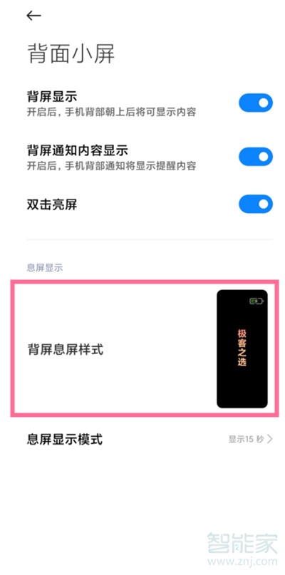 3、进入背部小屏设置页面后,将【背屏显示】右侧的开关开启。