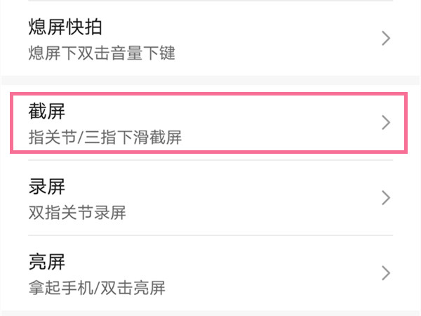 2、点击截屏,开启指关节截屏,指关节敲击并画字母S启动滚动截屏。