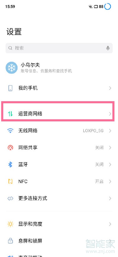 1、在手机设置菜单中点击【运营商网络】。