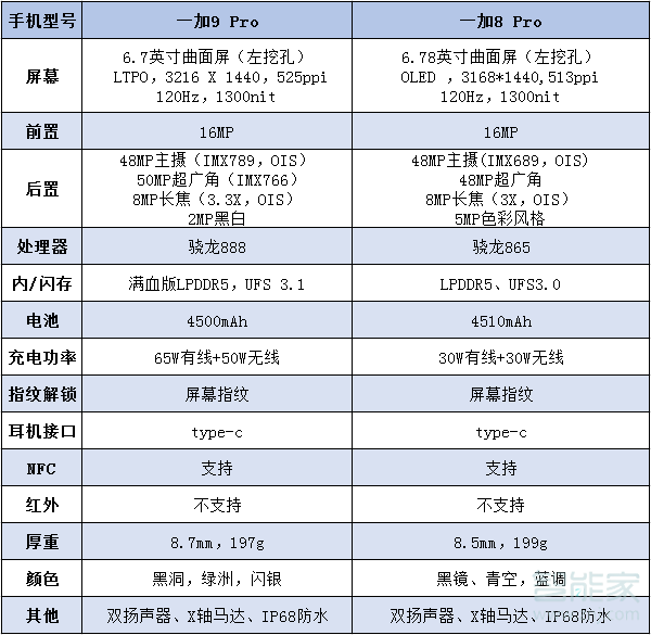 3月24日,一加发布了和哈苏共同打造的一加9系列,无论是屏幕、影像、性能还是快充都较上一代有了很大提升。那一加9pro和一加8pro有什么区别呢?