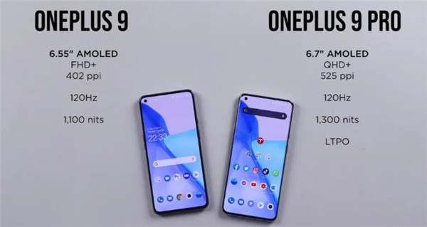 一加9和一加9Pro均是采用的AMOLED材质屏幕,但是在尺寸方面分别采用的是6.55寸屏幕和6.7寸屏幕,另外屏幕分别支持FHD+和QHD+。一加9和一加9Pro的屏幕像素密度分别为402ppi和525ppi,都支持120赫兹刷新,但是在亮度方面分别是1100nits和1300nits。目前从屏幕的材质和效果来看,一加9Pro要比一加9更好。