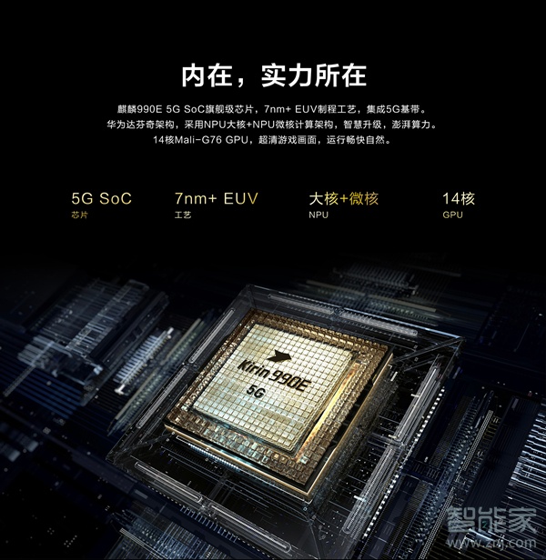 华为mate40e是什么处理器华为mate40e搭载麒麟990E处理器,拥有大核NPU+微核NPU,采用了7nm+ EUV制程工艺,并且将5G基带集成到SoC上,集成了约103亿晶体管。