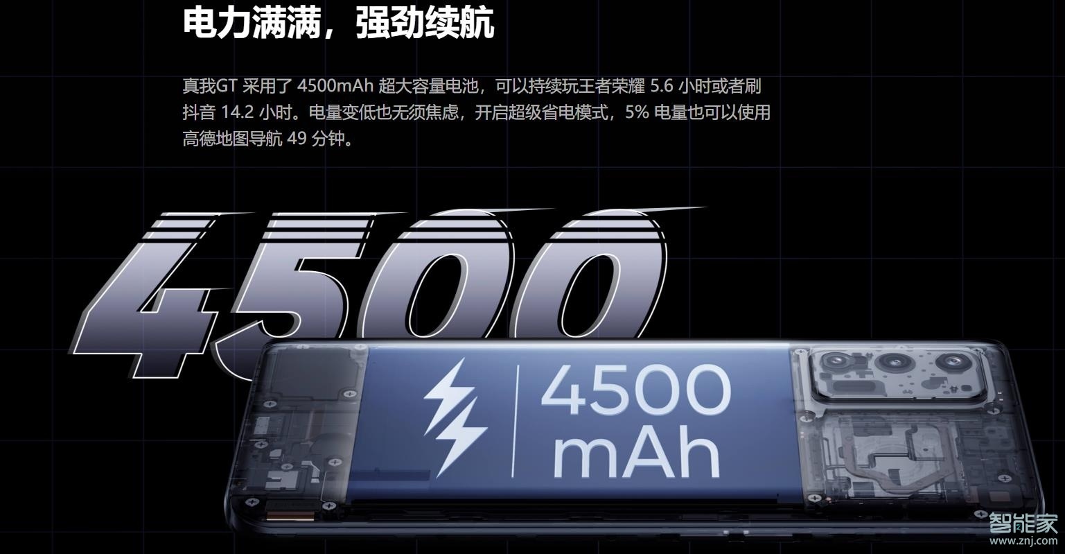 真我gt:搭载高通骁龙888处理器,配置满血版 LPDDR5+UFS 3.1的内存和存储,内置4500mAh超大容量电池+65W 智慧闪充,支持GT 模式,满血主频、超现实增强画质、4D 振感、游戏闪电启动,方方面面为你带来暴走性能。同时,GT 模式为你准备了专属启动动画,动效+音效+振感,强悍性能从不缺少仪式感。还配置杜比全景声双扬声器+Tactile Engine 线性马达+3D 钢化液冷散热+WiFi 6 增强版功能。