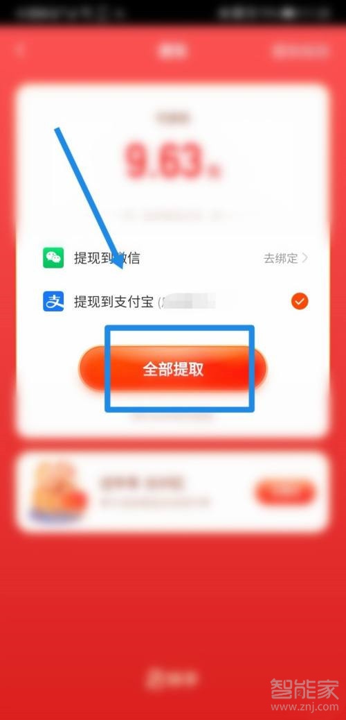 4、完成支付宝绑定后,即可将红包提现到支付宝。