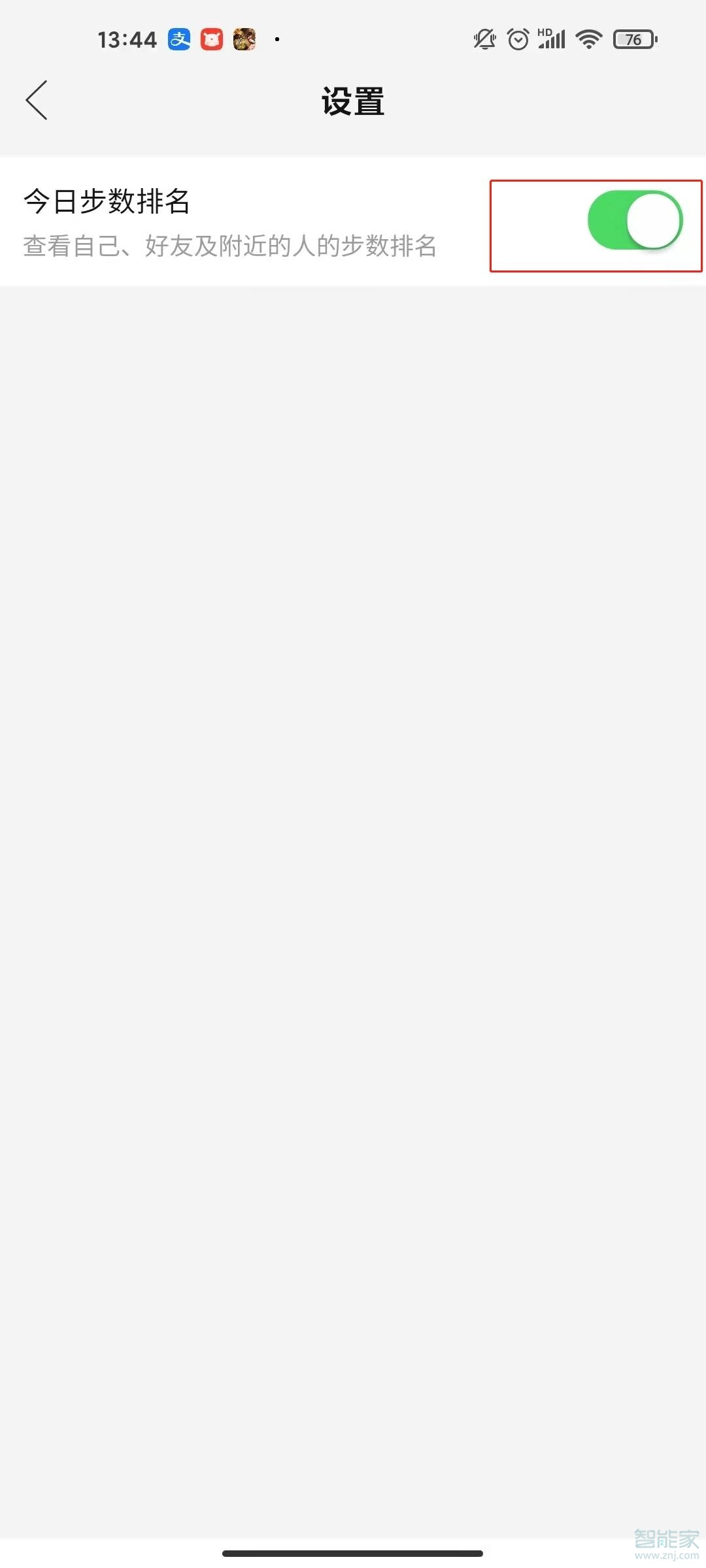 5、将今日步数排名的开关关闭,点击确认关闭即可。
