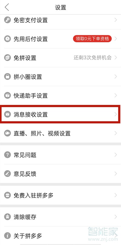 2、点击【消息接收设置】,