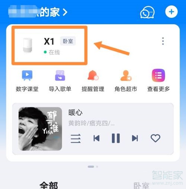 2、打开天猫精灵在【精灵家】查看自己的设备名称,