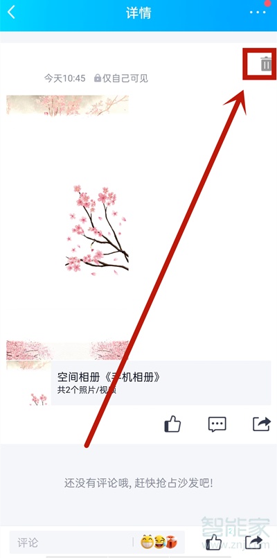 1、进入自己QQ空间,找到同步的说说,点击右上角删除图标。