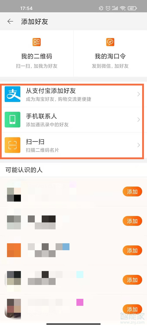 3、可以点击从支付宝添加好友、手机联系人、扫一扫的方式进行添加。