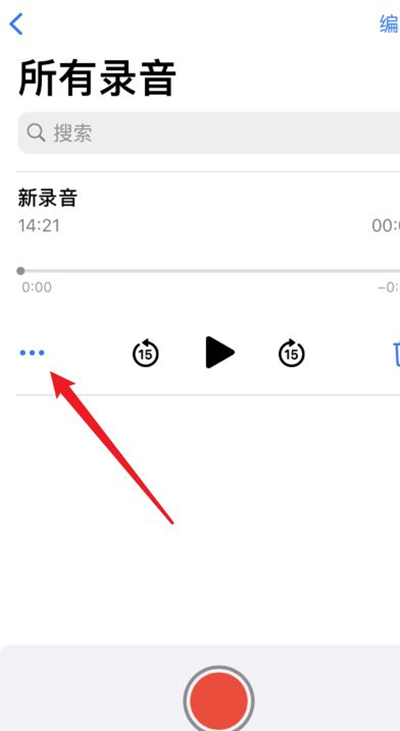 1、首先打开苹果手机自带的语音备忘录软件,点击录音左下角的三个小点图标,