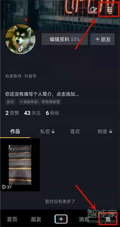 1、打开抖音,点击右下角【我】,点击右上角【三】按钮。
