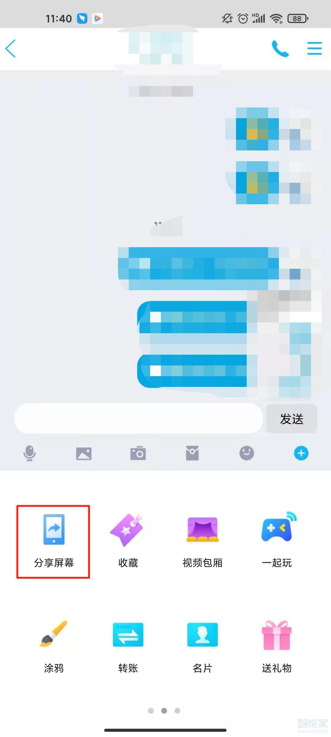 1、打开手机QQ,在好友聊天页面点击下面的+图标。