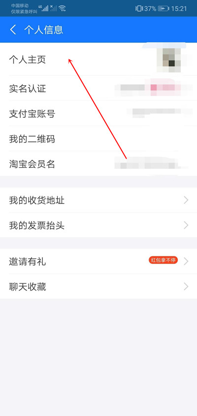 2、点击头像那一栏。