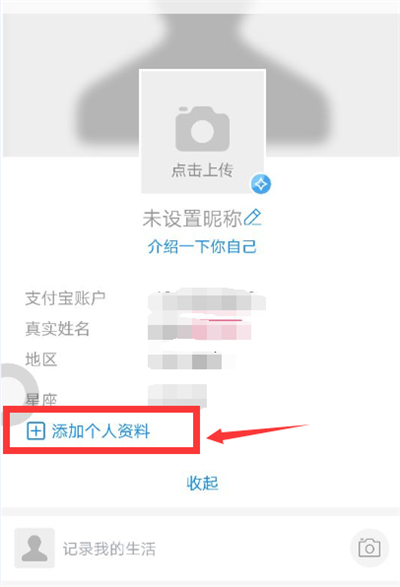 4、点击添加个人资料。