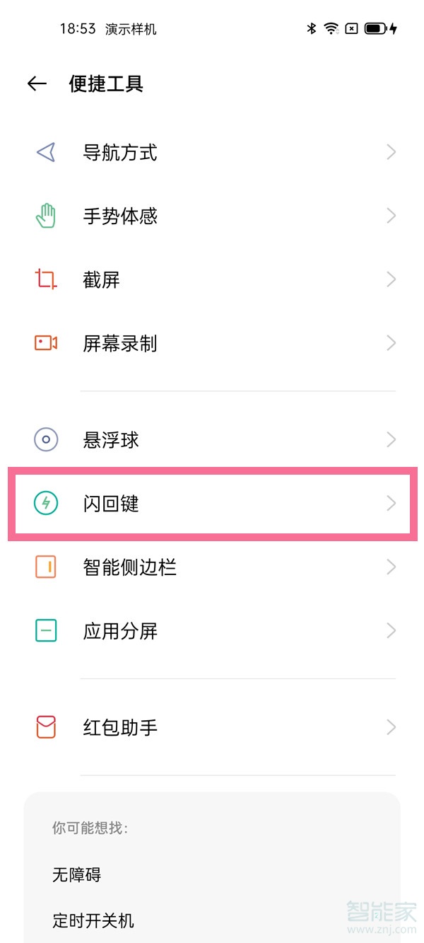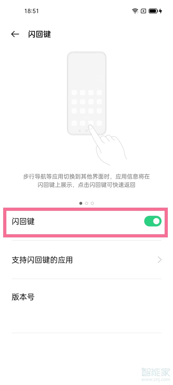 3、开启【闪回键】右侧的开关即可。