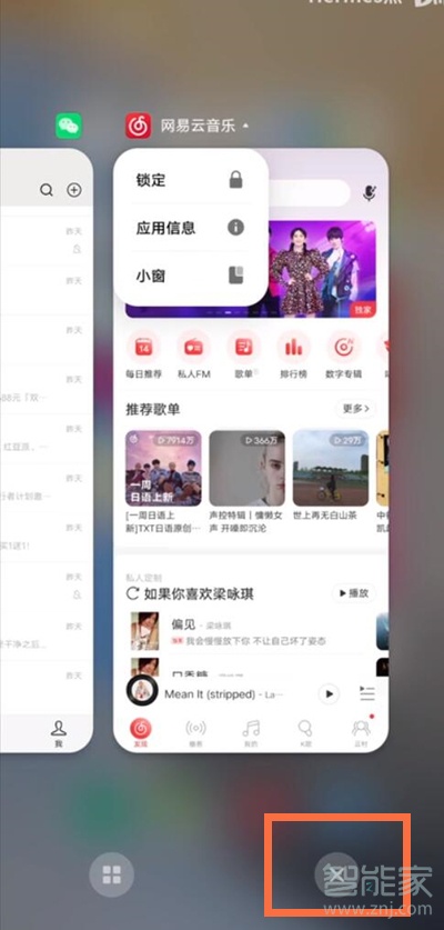 1、从手机屏幕底端向上滑动至屏幕中间,停顿一会,呼出后台应用,