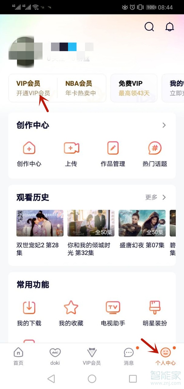 1、打开腾讯视频app,在个人中心页面点击VIP会员。