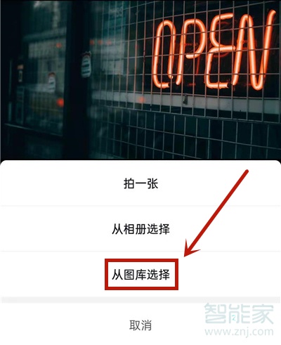 3、点击【从图库中选择】,从图库中选择需要的背景(根据不同需求,可以用不同方法采集背景图片)。