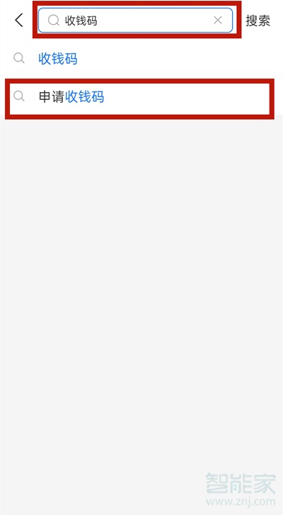 1、打开支付宝,点击上方搜索框,输入【收钱码】,点击【申请收钱码】。