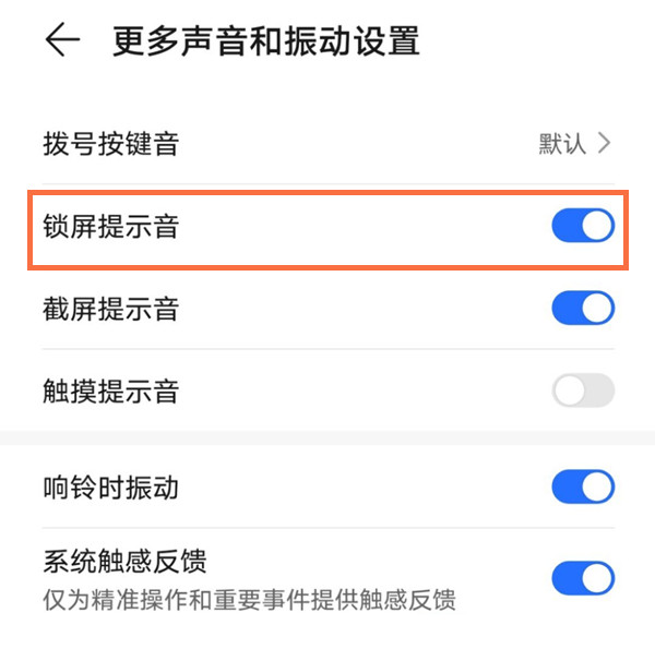 3、关闭【锁屏提示音】右侧的开关。