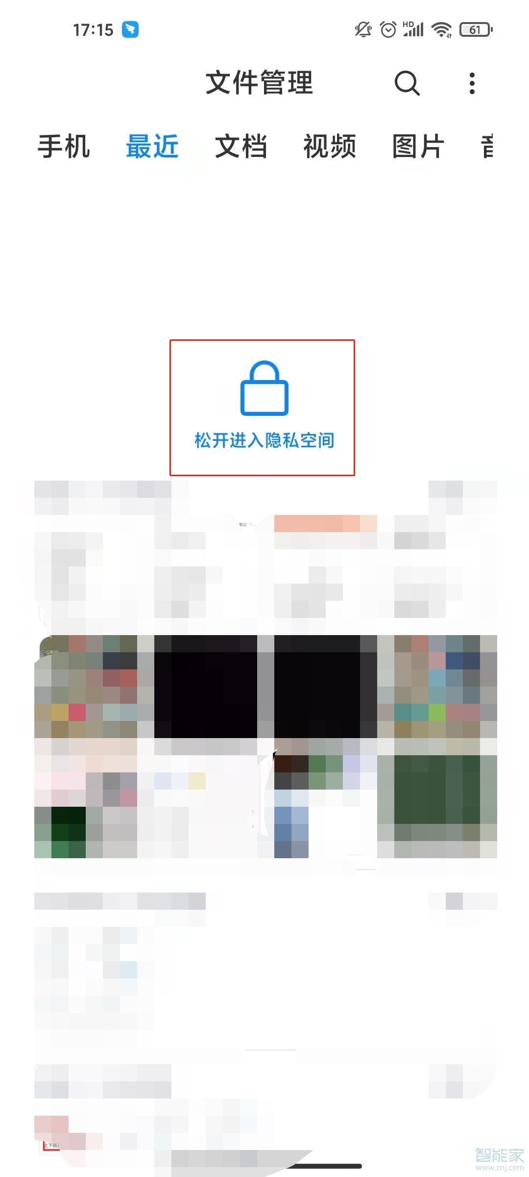 2、在文件管理页面往下拉,再松开即可进去隐私文件空间,输入密码进入。