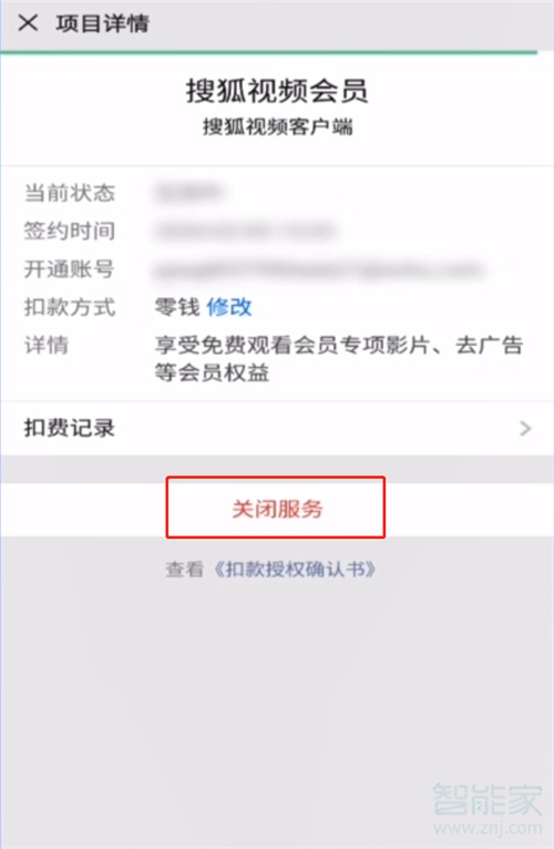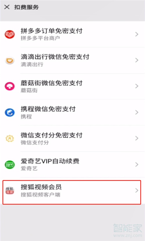 3、点击免密支付/自动扣款,找到搜狐视频会员,点击关闭服务即可。