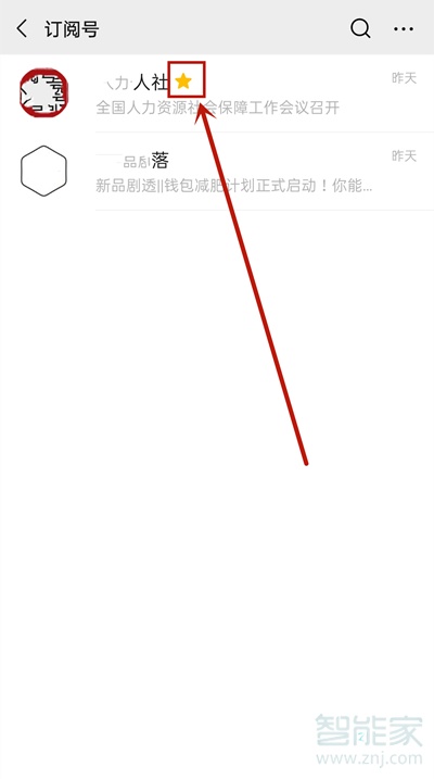 3、进入后可看到公众号名称后方有个黄色五角星图标,即代表此公众号设为了星标。